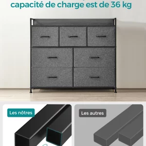 Optimisez votre espace avec la commode SONGMICS, dotée de 7 tiroirs en tissu et d’un design moderne. Parfaite pour ranger vêtements, chaussures ou objets déco, elle s’adapte à votre chambre, salon ou dressing. Ses pieds réglables assurent une stabilité optimale, et le kit anti-basculement garantit une sécurité accrue. Facile à monter grâce à ses pièces numérotées et instructions illustrées, cette commode allie fonctionnalité et esthétique. Ses dimensions généreuses (98×85 cm) et sa capacité de charge élevée en font une solution de rangement idéale et durable.