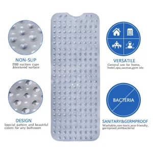 Offrez-vous une sécurité et un confort inégalés dans votre salle de bain avec le tapis de douche antidérapant MEOOAWQI. Extra large (100x40cm) et doté de centaines de ventouses, il assure une adhérence parfaite au sol pour prévenir les chutes. Sa surface texturée masse délicatement vos pieds, tandis que les trous de drainage permettent à l'eau de circuler, évitant l'accumulation et la moisissure. Facile à entretenir, il est même lavable en machine. Idéal pour toute la famille, c'est le cadeau parfait pour plus de sérénité.