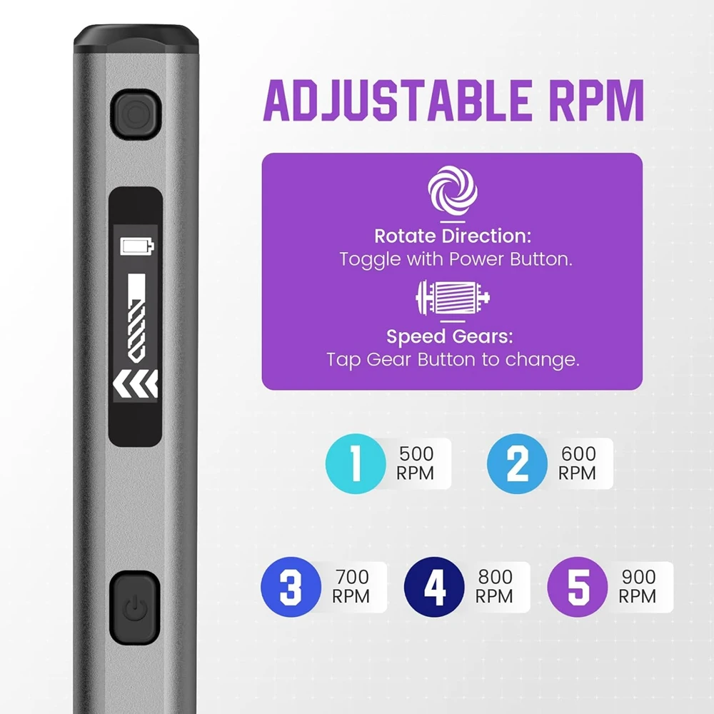 • Perçage efficace : Les tr/min réglables (jusqu’à 900 tr/min) permettent d’adapter la vitesse de perçage à différents matériaux pour des résultats fluides et précis.