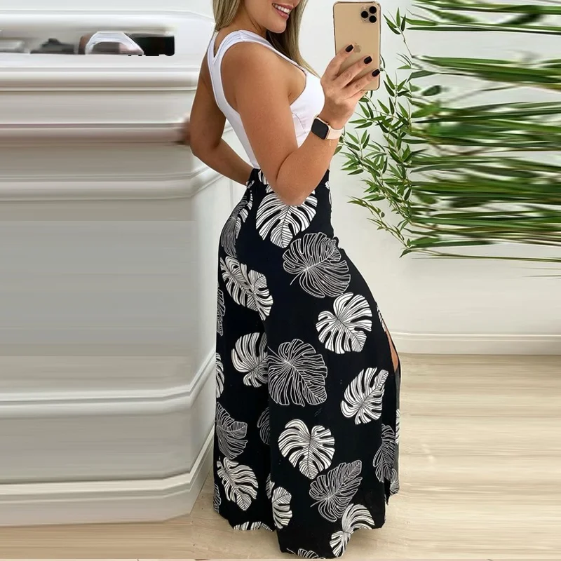 Ensemble d’été femme : Débardeur découpé et pantalon large imprimé tropical est la solution ultime pour un style estival élégant et confortable. Il est conçu avec un débardeur à découpe moderne et un pantalon large à imprimé tropical, offrant un look frais et sophistiqué pour la saison chaude. Cet ensemble est le choix parfait pour les femmes qui recherchent à la fois la mode et le confort lors de leurs journées ensoleillées, que ce soit pour les vacances ou pour une sortie décontractée. Il combine des éléments de design tendance comme les découpes et les fentes avec un motif exotique pour un style unique.