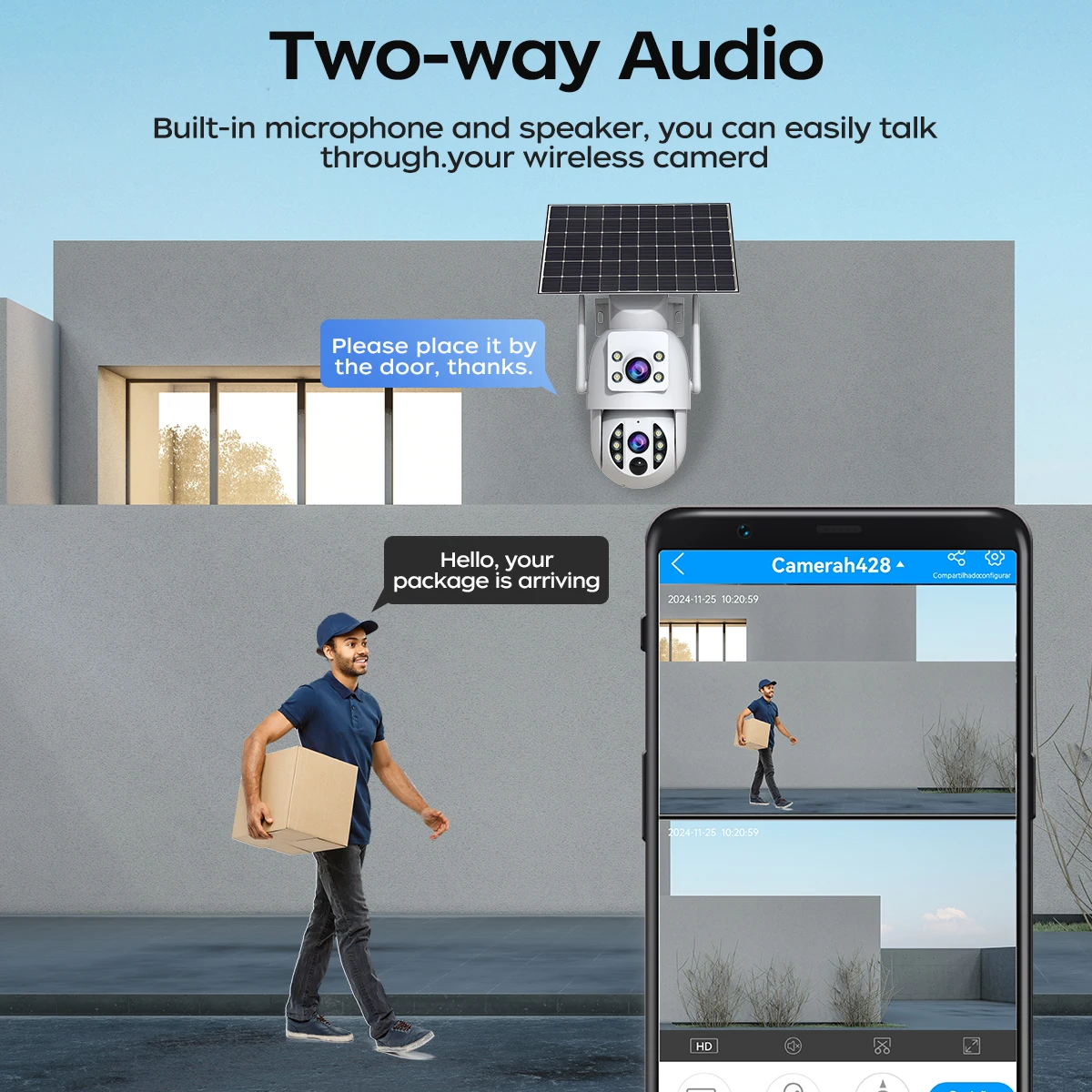 - Audio Bidirectionnel: Communiquez en temps réel avec les personnes présentes près de la caméra grâce à la fonction d’interphone vocal.
