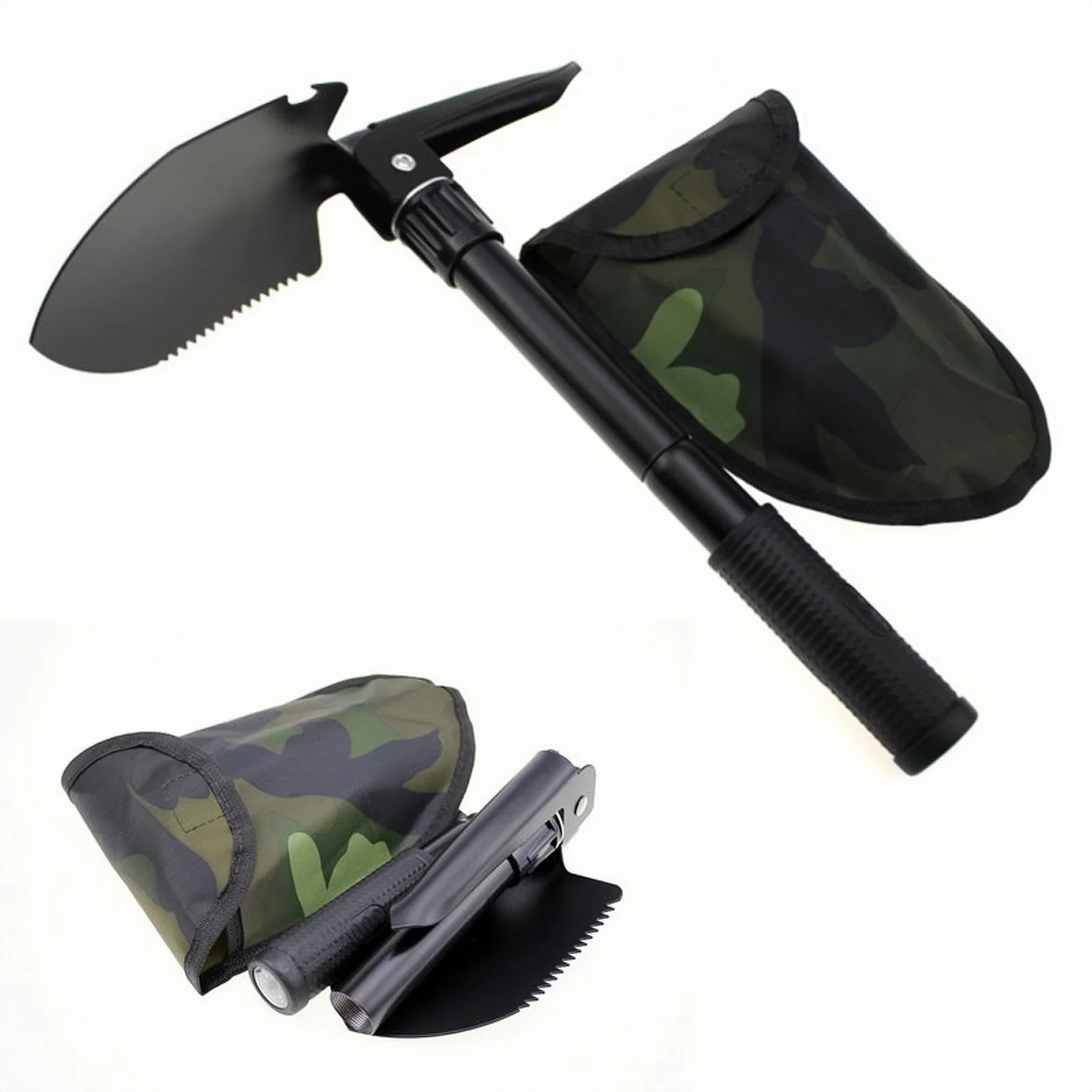 • Pelle Multifonctionnelle : Cet outil combine les fonctions de pelle, scie, décapsuleur et houe, offrant une polyvalence exceptionnelle pour diverses tâches en extérieur.