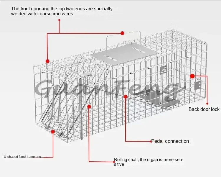 - Mécanisme de Déclenchement Fiable: Assure une capture rapide et efficace dès que l’animal pénètre dans le piège.