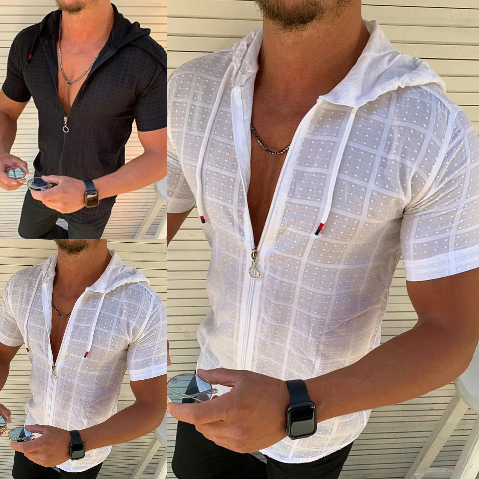 Ce sweat à capuche homme manches courtes révolutionne le style décontracté avec son design hybride unique. Alliant le confort d’un hoodie à la praticité d’un t-shirt d’été, ce cardigan zippé offre polyvalence et modernité pour toutes occasions.
