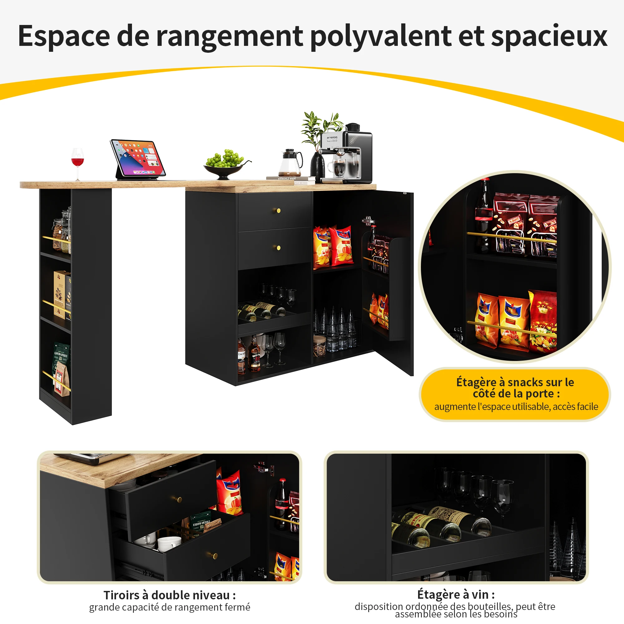 - Conception Rotative à 360° : Le panneau latéral innovant tourne sur 360 degrés, permettant une adaptation facile aux coins et une disposition flexible, transformant la table en bureau, armoire de travail ou vitrine de salon.