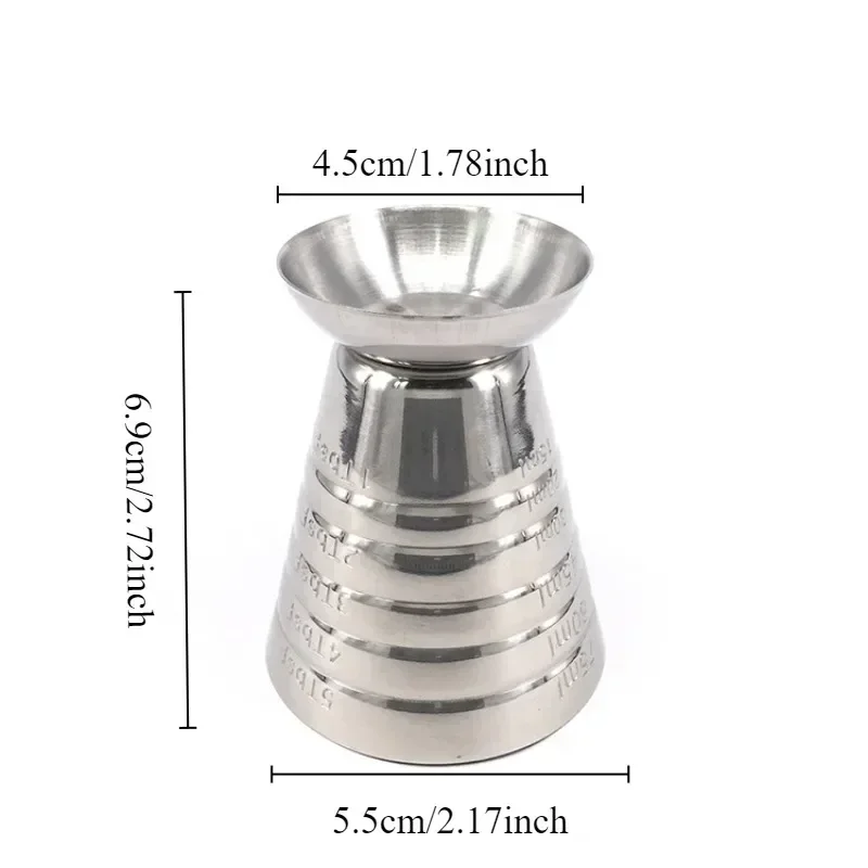 Verre à Cocktail Multifonction 3 en 1 en Acier Inoxydable (75ml) est la solution ultime pour préparer vos cocktails avec précision, car il combine les fonctions de shaker, jigger et tasse à mesurer. Il dispose également de trois affichages d’échelle de capacité pour répondre aux différents besoins quotidiens et d’une conception de semelle pour une meilleure stabilité, le rendant parfait pour les amateurs de cocktails et les professionnels de la mixologie. Ce verre multifonction est fabriqué en acier inoxydable 304, garantissant durabilité et résistance à la corrosion.